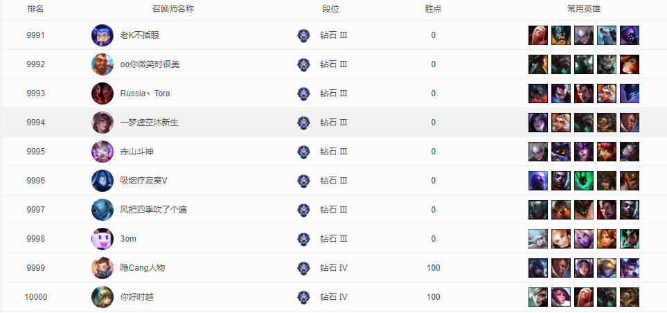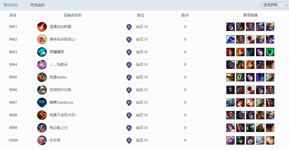 诺克萨斯的玩家水平和祖安也差不多,前一万的玩家都是在钻石4以上,感觉电三玩家都比较低调。除了诺克萨斯之外,班德尔城、战争学院的最低段位都是钻4。