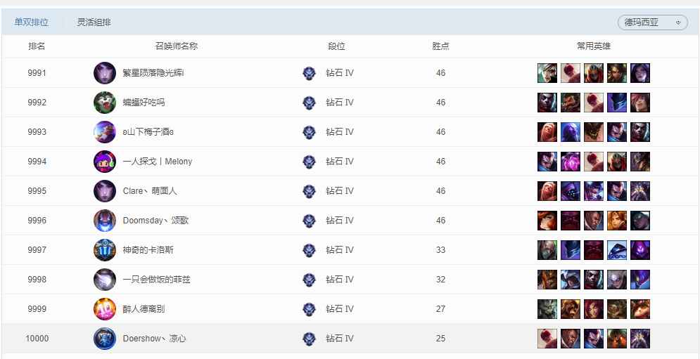 德玛西亚虽然作为网通二区,但它却是网通中的最大的一个区,看来拥有一个好名字就是优势,前一万名玩家的最低段位也同样是钻石4,弗雷尔卓德也和它差不多。