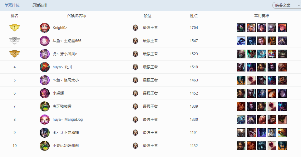 首先是公认的人最多,水平最高的大区,作为LOL中最古老的大区之一,电信一积累了无数玩家,并且有不少其他区的玩家涌入,使得经常在晚上玩游戏的时候还需要排队。在电一大区前一万的玩家中,全部都是钻石2以上的段位,最强王者段位的玩家已经满200了,也就是电一前一万名玩家都是峡谷之巅的大神。