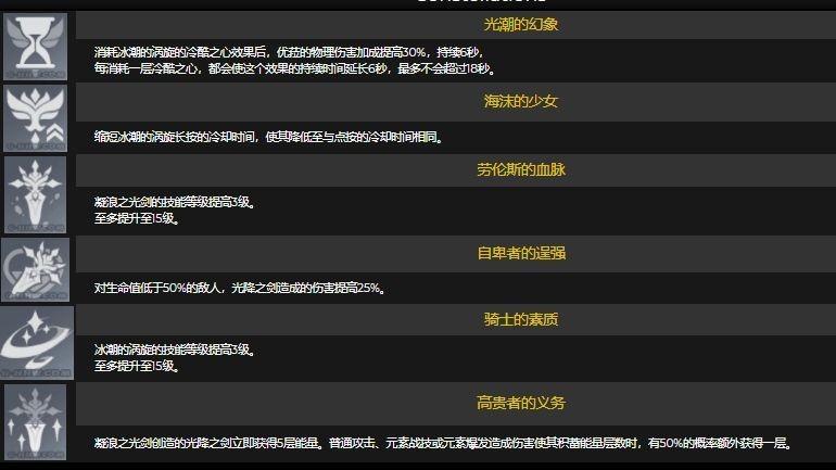 元素战技方面给敌人造成冰元素伤害,命中敌方单位后获得冷心效果,可以叠加2次,消耗2层冷心直接出现立刻爆炸的光降之剑,同时获得韧性,增加抗打断能力以及防御力提升,光看这点就可以看出尤拉基本上很适合对付丘丘王,遗迹守卫这种容易把玩家打飞的怪物,当然被对付多个敌人被围殴的情况下也可以做到无视敌人的攻击来输出。长按E会消耗冷酷之心同时CD变长,不过可以降敌人的物理和冰元素抗性,再次可以确认物理刻晴可以退休了。顺带一提,命1可以在消耗冷酷之心时候增加物理伤害30%,命2可以让长按的冷却时间缩短成4秒。