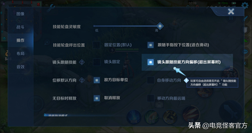 所有英雄都可以使用这个设置,怪客这里建议大家到时候直接打开就可以了,具体操作步骤如下:设置-操作-技能操作方式-镜头跟随技能-镜头随技能方向偏移(超出屏幕时)。