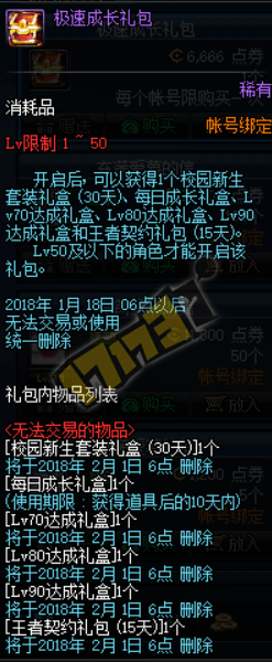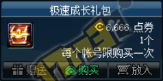 商城上架极速成长礼包,6666点券无法使用代币券,大概是达成等级会送一些材料这类的。