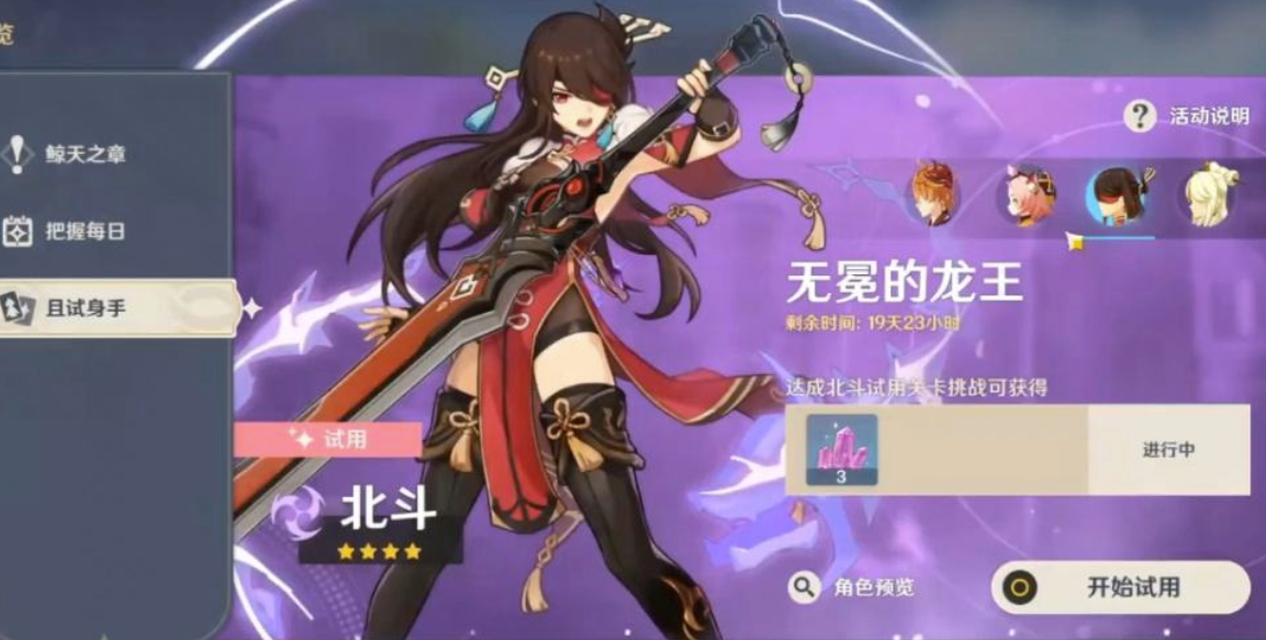 1、角色试玩。游戏内每次推出新卡池都会有角色试玩相关,做起来又简单又快还能让你在试玩里爽一把新角色,虽然给的原石不多一般就20点,但苍蝇肉也是肉嘛。