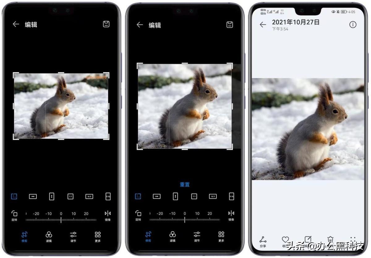 当我们保存带有水印的照片时,如果水印的位置在图片的边角位置,我们也可以使用手机自带的修剪功能,将图片的水印进行裁剪就可以消除啦。