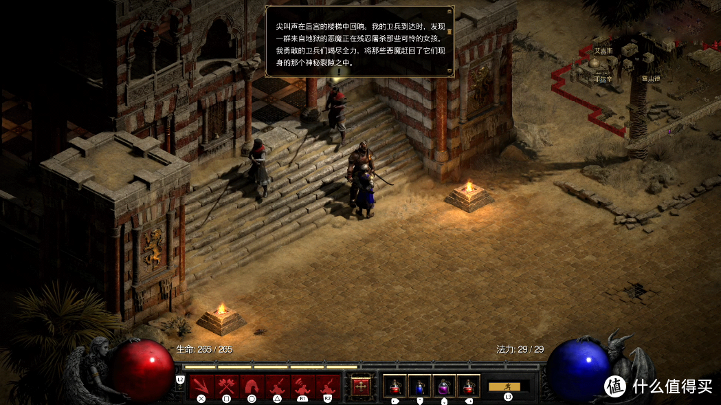 虽然法杖已经就绪,但塔·拉夏墓穴的位置还是不得而知,就在这时,鲁·高因的国王声称王宫里出现了大量的恶魔,请求勇士们前往王宫消灭这些恶魔。