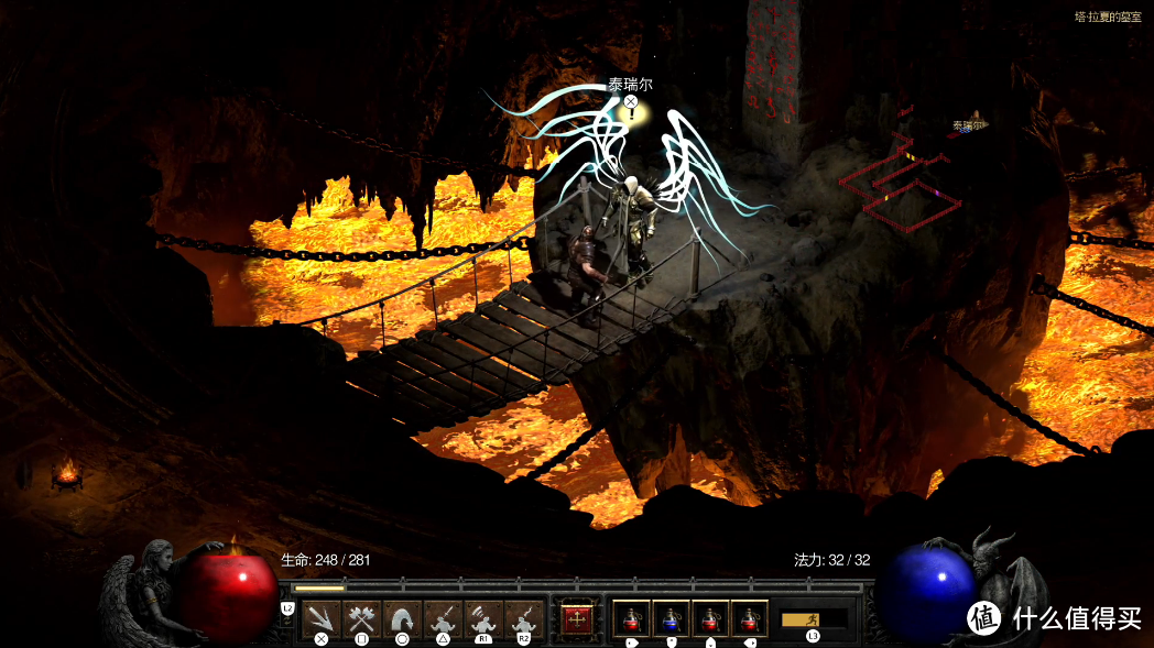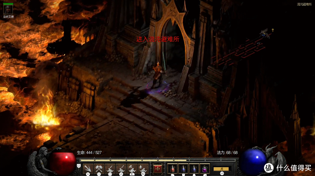 杀死了墨菲斯托的勇士们在火焰之河中,跟随着迪亚波罗的足迹继续前进,很快就来到了这里的终点:混沌避难所。