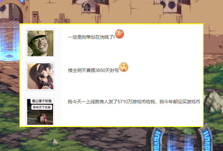 树大招风!在面对这位“欧皇玩家”喜获16亿来自TP的大礼,一时间也是引起了不少玩家的围观和吐槽,有玩家直言:“一定是狗策划在洗钱”,也有玩家调侃:“楼主明天喜提3650天封号”,更是有玩家表示:“我是今天一上线就收到了5710万金币”。总而言之,很多玩家认为策划在洗钱,有玩家担心号主的遭遇,有玩家也收到了TP的一笔横财。
