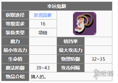 这个装备可以和幸运草之戒组成幸运套装,能够提高玩家的200点幸运值,可以说有了这两个神器,就可以极大的提高玩家得到极装备的概率,应该算是后期的标配了。