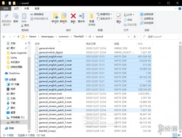 下载完成后,把sound文件夹里面写着english的语音文件全移到其他文件夹来备份。