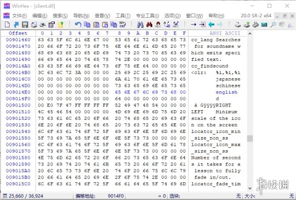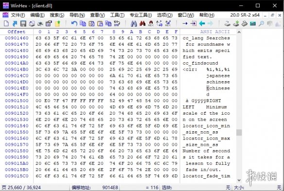 使用你的16进制编辑器,打开client.dll文件,我这里使用的是winhex。