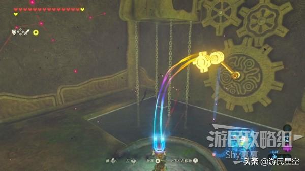 在齿轮外侧还有一个宝箱,宝箱上有一个眼睛,需要在看到宝箱后把象鼻子调到从上向下第五个位置,用弓箭射眼睛,在去捡宝箱。