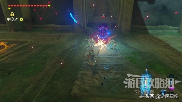 进入神兽内部,第一层后两个眼睛,一个小型守护者,第一个眼睛在门口,第二个眼睛在水里,都破坏之后,使用制冰器把门抬起来,获得水神兽地图。获得地图后,在旁边的水里可以用磁铁拉上来一个宝箱。