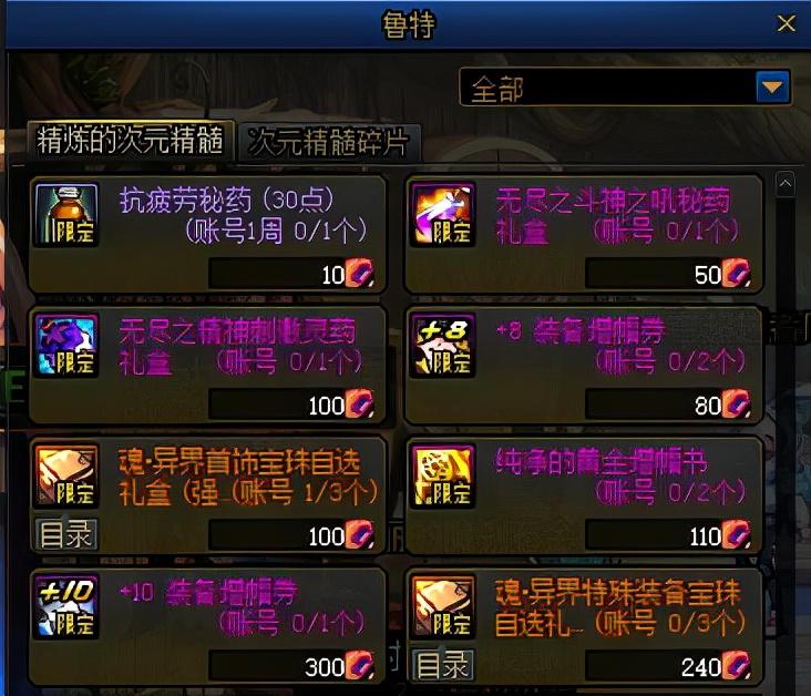 1、魂·异界:在NPC鲁特处,我们可以用精炼的次元精髓兑换2个+8装备增幅券、1个+10装备增幅券、以及1个增幅保护券。
