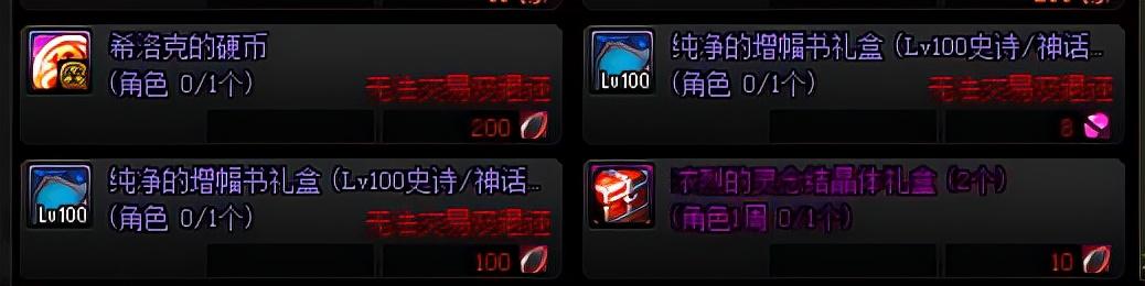 5、克伦特:我们在克伦特商店,每周都可以用灵界之石兑换1本纯净的增幅书、1个蕴含异界气息的礼盒(净化书、扭转书二选一)。因为这两个道具不限次数,每周都可以兑换1次,所以勇士们可以借助这个常驻活动,轻松将自己身上的装备全部打上红字。