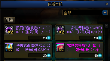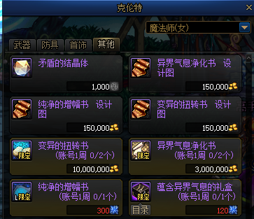 5、克伦特商店:用灵界之石,每周可以兑换5个试验型增幅器(角色限制50个)。