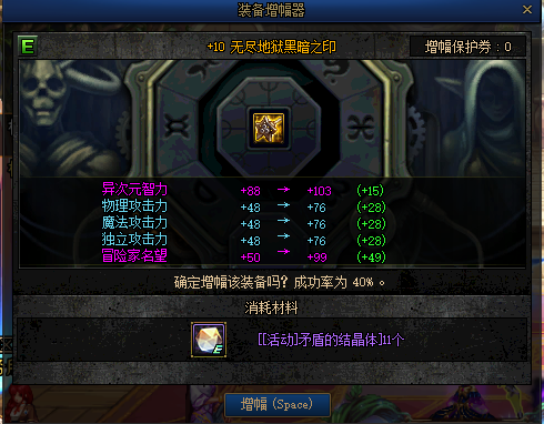 在身上的装备打上红字之后,我们就可以对其进行增幅,从而提升角色属性。