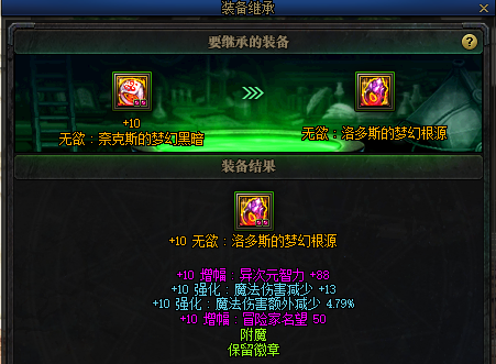 等我们获得毕业的输出装备之后,可以利用装备继承系统,将过渡/巨龙装备的打造继承到毕业装备上面,资源也不会浪费。