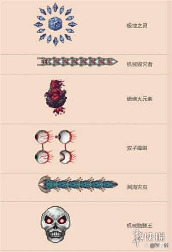 召唤方式:我们可以用极地之灵、硫磺火元素、机械毁灭者、渊海灾虫、双子魔眼、机械骷髅王、世纪之花、灾厄之眼进行召唤。