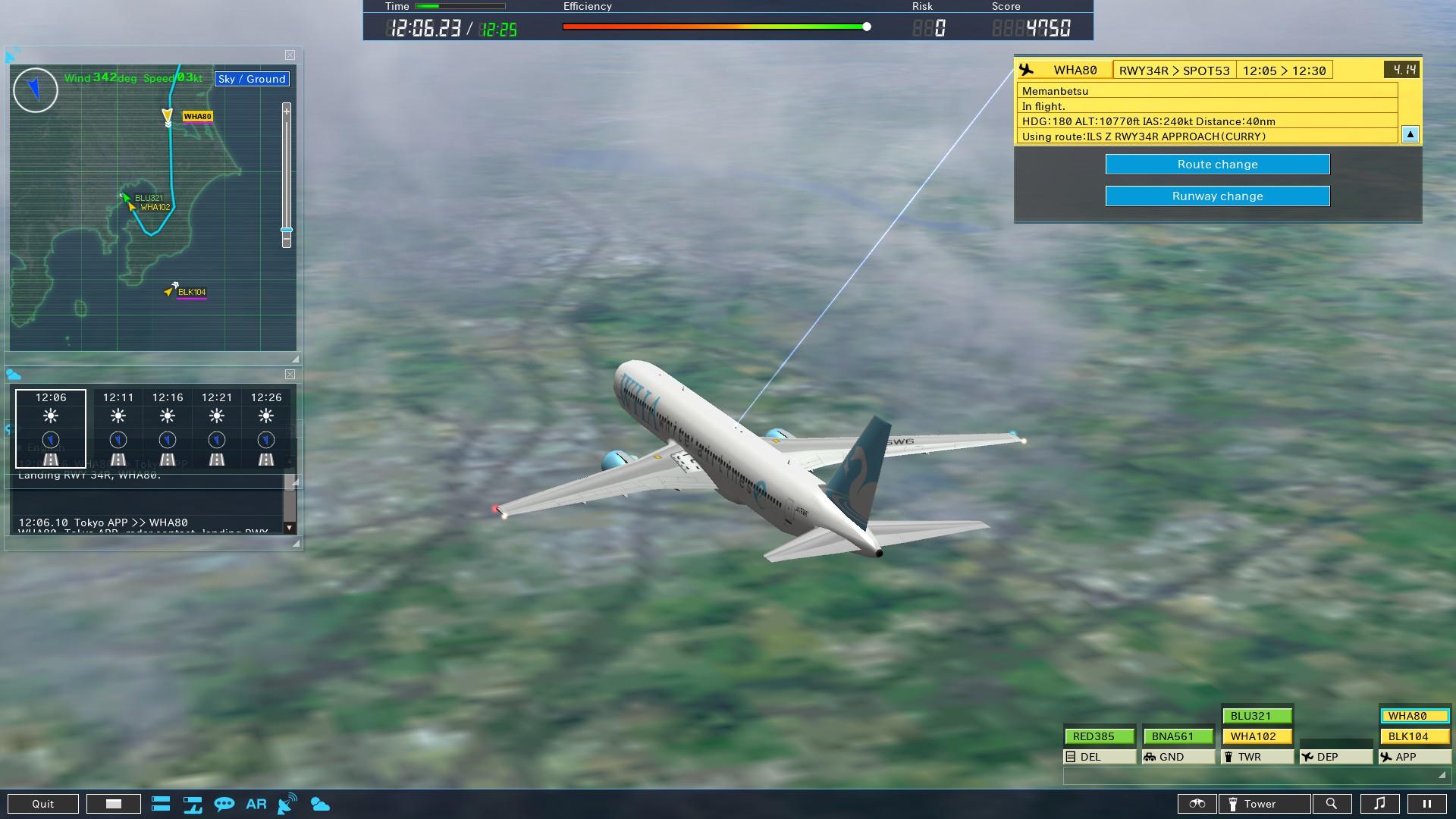 然而甚至不必到游戏后期,在下一关的雨天挑战里,我就已经放弃了应聘的愚蠢念头,进而怀疑自己是否智力正常了:在我自信满满的调度下,两家飞机居然能在跑道两侧加速对冲,仿佛要来上一场荣耀的中世纪骑士决斗,若非系统及时结束了游戏,真不知道会发生怎么的惨剧。这还没完,既然我们知道了计划会相互干扰,那究竟该如何调整?在夜晚或是雾天这样能见度不足的场景里,我们又该重点关注哪些变量?就算天气正常,当突发状况出现,或者仅仅是数量接近机场接洽能力极限的飞机在机场上空盘旋时,我们有足够的把握将其一一处理妥当吗……原来想成为一名航空管制官,扎实的专业知识只是入门的基础,反应灵敏的大脑只是不进班房的必要条件,除此之外还要有卓越的计算能力,明察秋毫的视力……还好这只是一款游戏。