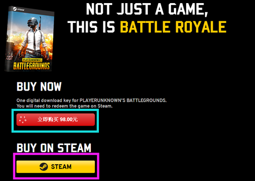 虽然在绝地求生官网可以购买游戏,但是点击“BUY NOW”以后还是会跳转到steam页面,毕竟游戏是在steam上架的,如图: