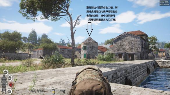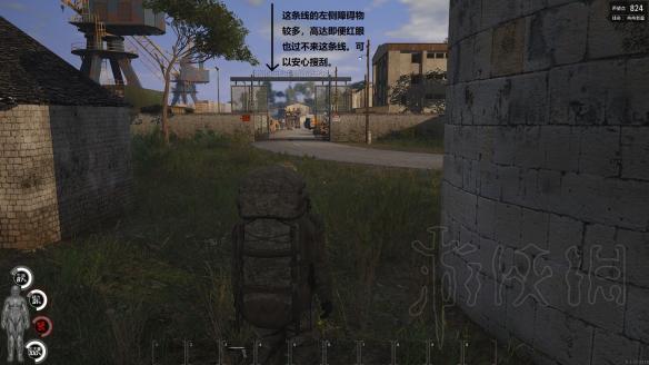 此处搜刮要点在于利用枪声吸引并肃清丧尸,还可以把大门打开后趴在谷仓上用狙击枪调戏高达,而高达发现不了你。此处一共三个高达,绕着大门右侧的两个工厂转圈巡逻。