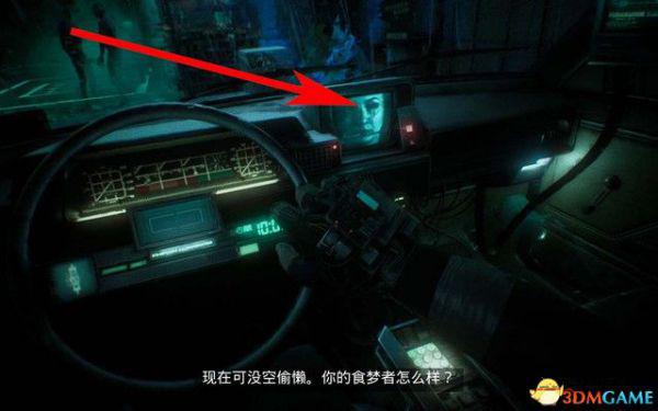 如下图箭头所指,将准星对准车内的显示屏,然后按鼠标左键进行互动。