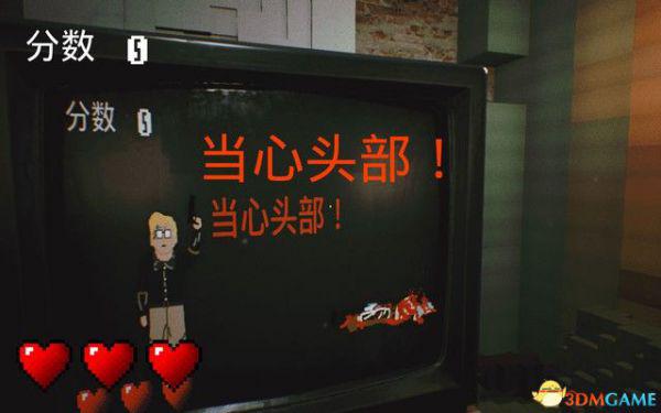 进入记忆之后,和电视机互动,当出现担心头部的时候,抬头便可看到掉落的俄罗斯方块,