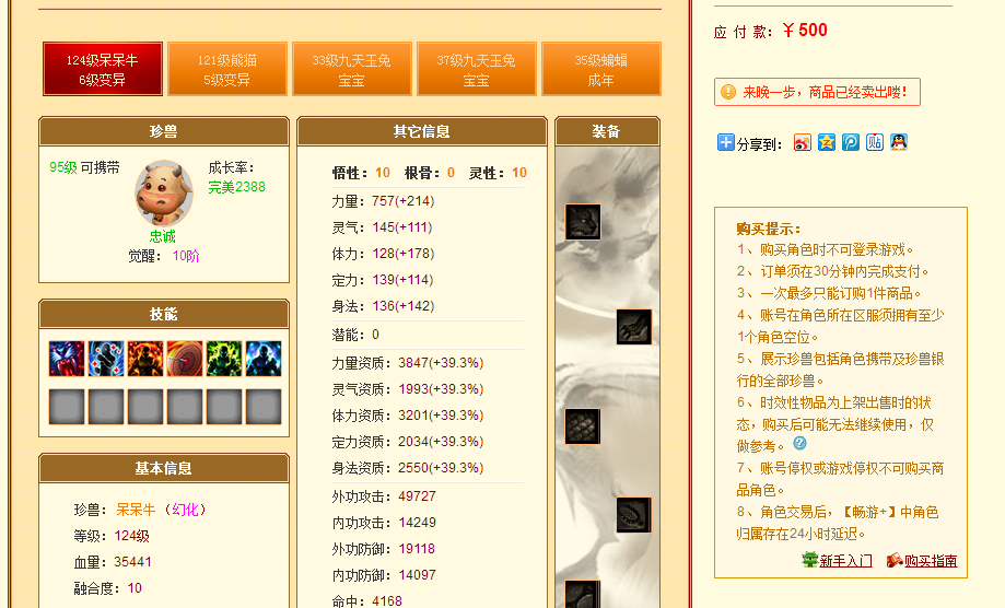 但这个账号内还有一个3个10的附体,此珍兽最低都能值400元左右
