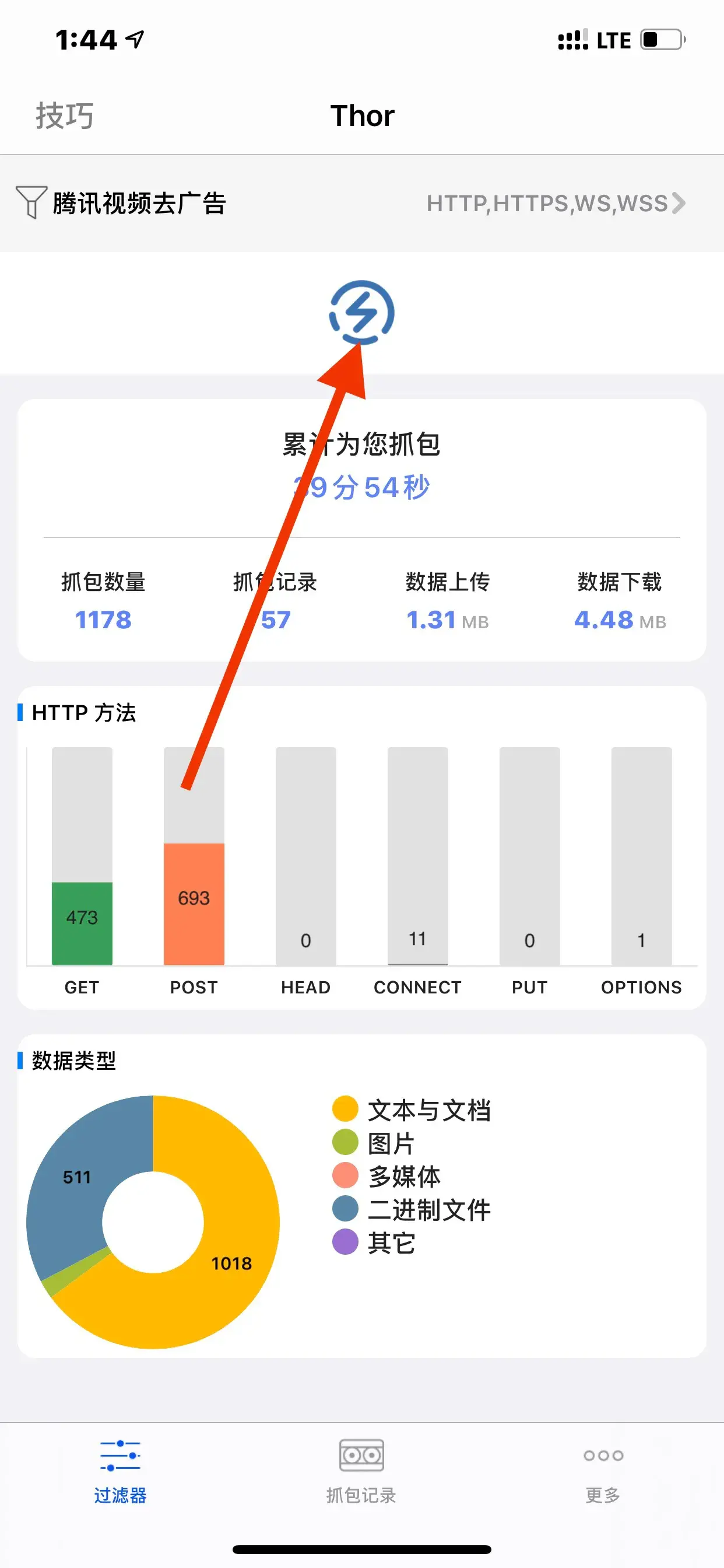 选择它,然后开启抓包
