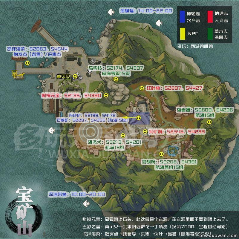 宝矿山图鉴坐标:(财神元宝位置:走进山洞后边走边回头查看,不要飞到山顶上。)