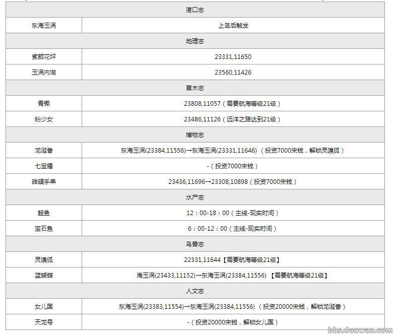天涯明月刀航海图鉴攻略(航海之各岛屿图鉴坐标攻略图全集)