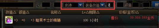 优化了改造史诗检索,因“可交易”属性,只需在品质上选择史诗即可检索出代售装备,也适用“改造阶段”搜索,操作方面并不复杂;