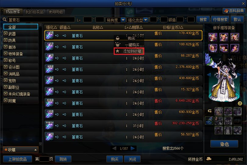 ◆收藏功能:在拍卖行输入物品名称并进行检索,点击物品选择“添加到收藏”即可把当前物品添加到“左侧 - 收藏栏”中,