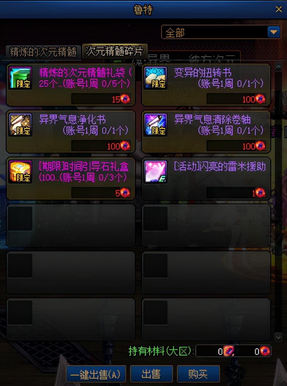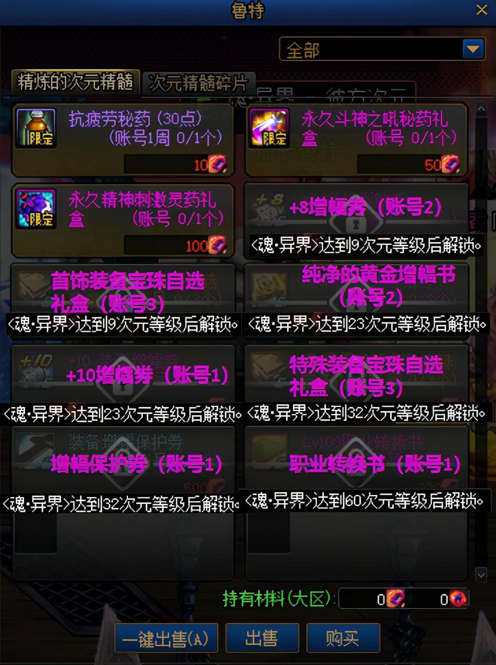 精炼的次元精髓可在商店兑换如下奖励,部分奖励需达到一定次元等级后解锁。