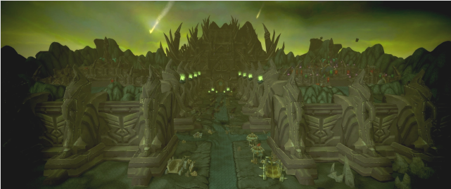 多年以来暗影议会在恶魔仪式使用的鲜血不断沾污着黑暗神殿。但是在第二次战争之中,黑暗施法者们在联盟对德拉诺大陆的毁灭性进攻中落荒而逃。萨满耐奥祖匆忙的为撤退行动开启了几个传送门,结果是法力反噬撕裂了大陆。在这片破碎的外域大陆之上,耐奥祖的传送门因为其战略价值受到了恶魔将军玛瑟里顿的关注,很快,它把黑暗神殿作为了自己的权力之座。