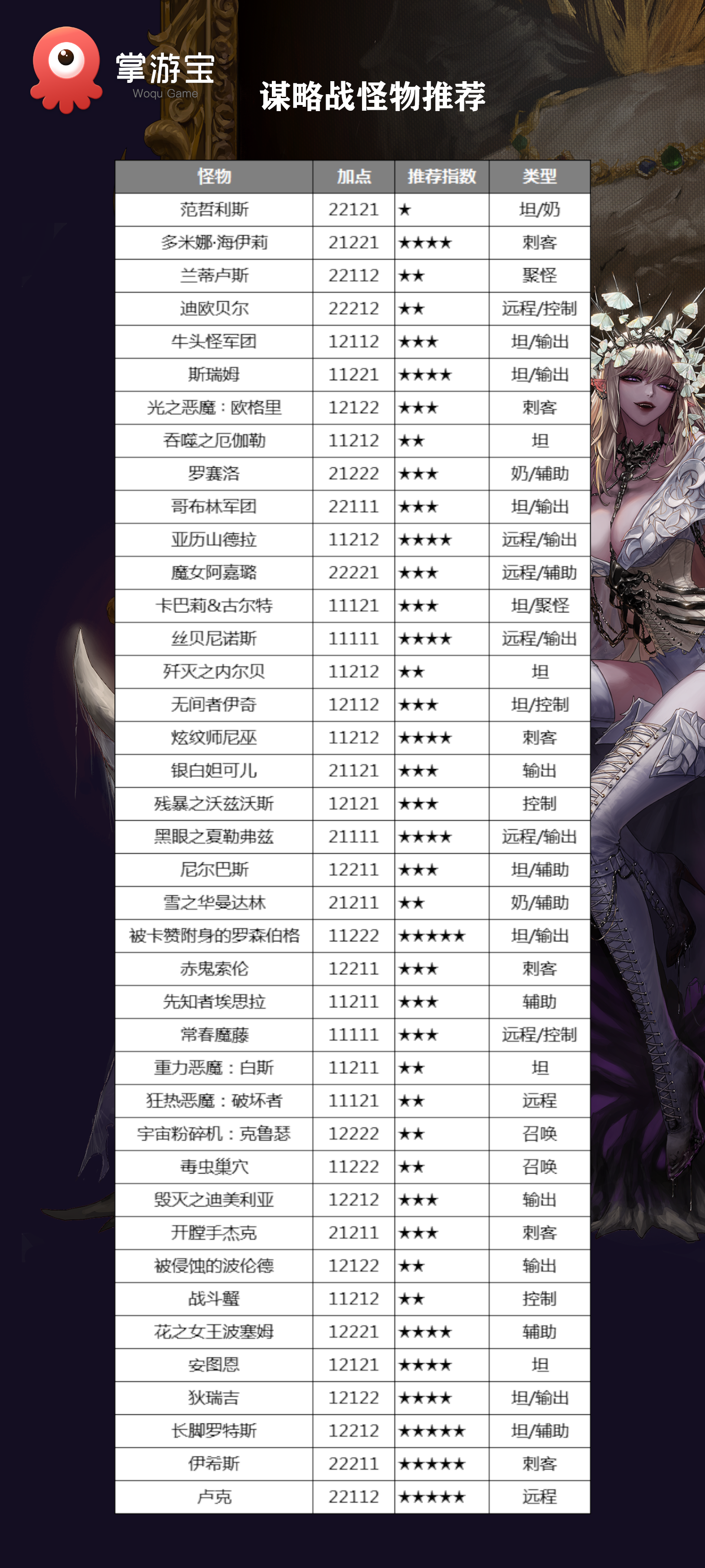 (目前尚有待开发的怪物,如果你有更好的怪物推荐及加点也欢迎在评论区下方留言)