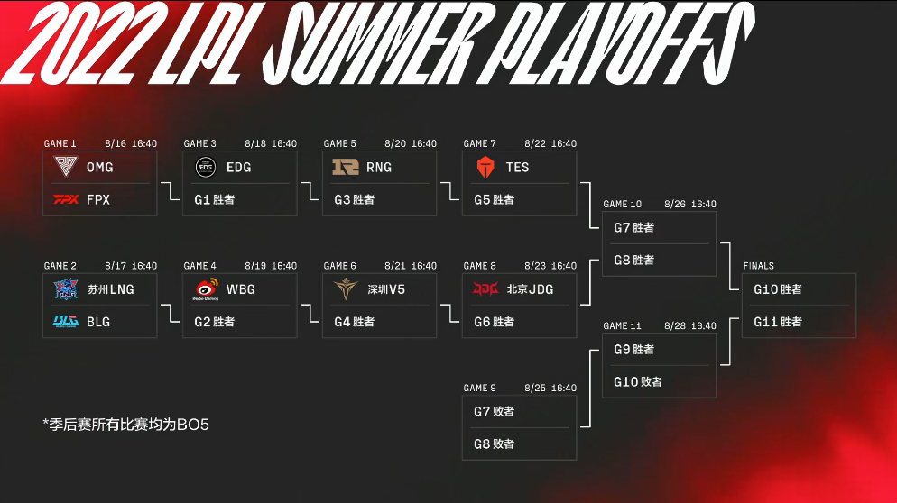 2022LPL夏季赛季后赛将于8月16日开始,具体赛程安排如下——