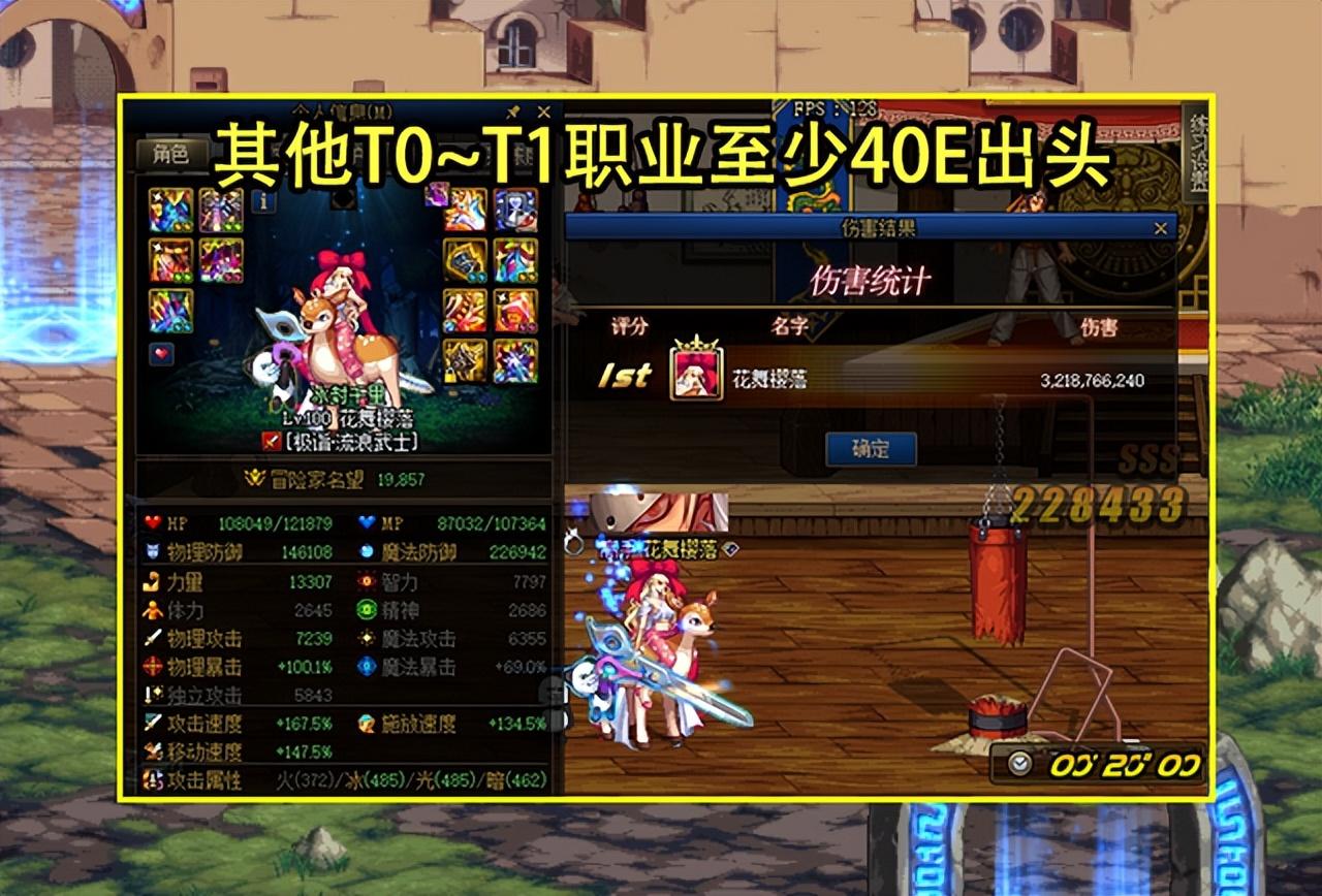 虽然说剑帝手感好,实战伤害也不算太差,在20秒打桩数据上,跟刃影、蓝拳、精灵骑士、气功等职业却有很大的差距,剑帝2.0都能30E伤害,其他T0T1职业至少能打40E出头,职业风头早已不能同日而语。
