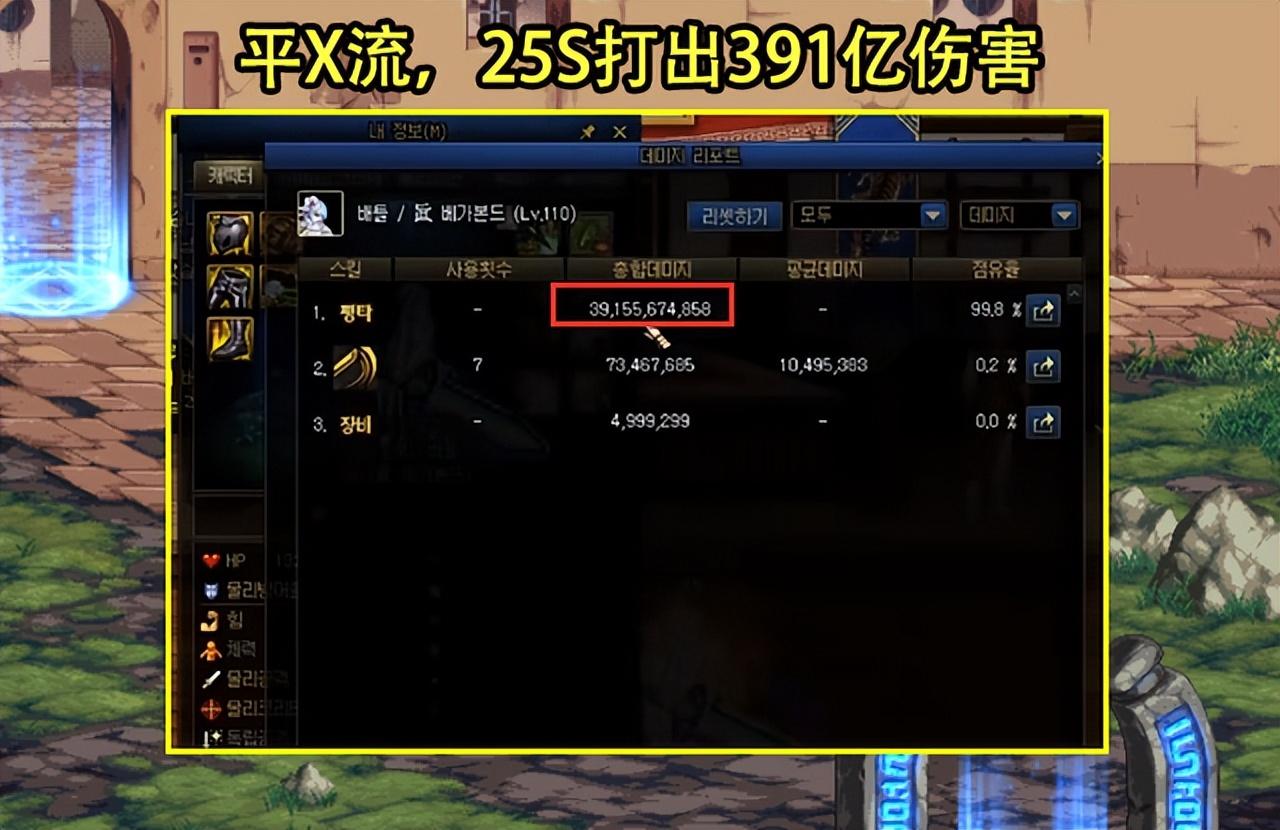 然而,就在3.31韩服对部分装备调整不久,110版本的剑帝却突然变成幻神了!一位2.3的剑帝,光靠感电流两仪功的平X,就在25秒绿桩测试中,打出了391亿的伤害,非常的可怕。