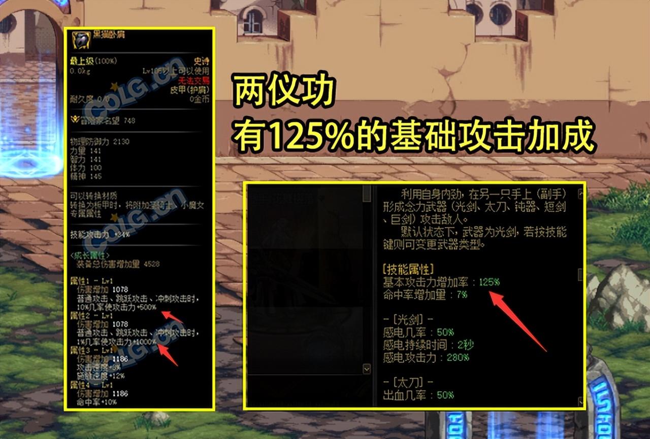 而之所以这么厉害,主要还是在黑猫肩这件装备加持,虽然说3.31韩服把魔战肩给砍废了,但是玩家凭借着黑猫肩又研究出新的玩法了,黑猫肩普通攻击时10%的几率增加500%的攻击力、1%的技攻增加1000%的攻击力,由于剑帝两仪功平X伤害本身就不低,而且在吃了基础精通是125%倍率的基础精通,因此在黑猫肩、基础精通的的加持下,伤害也是异常的可怕。