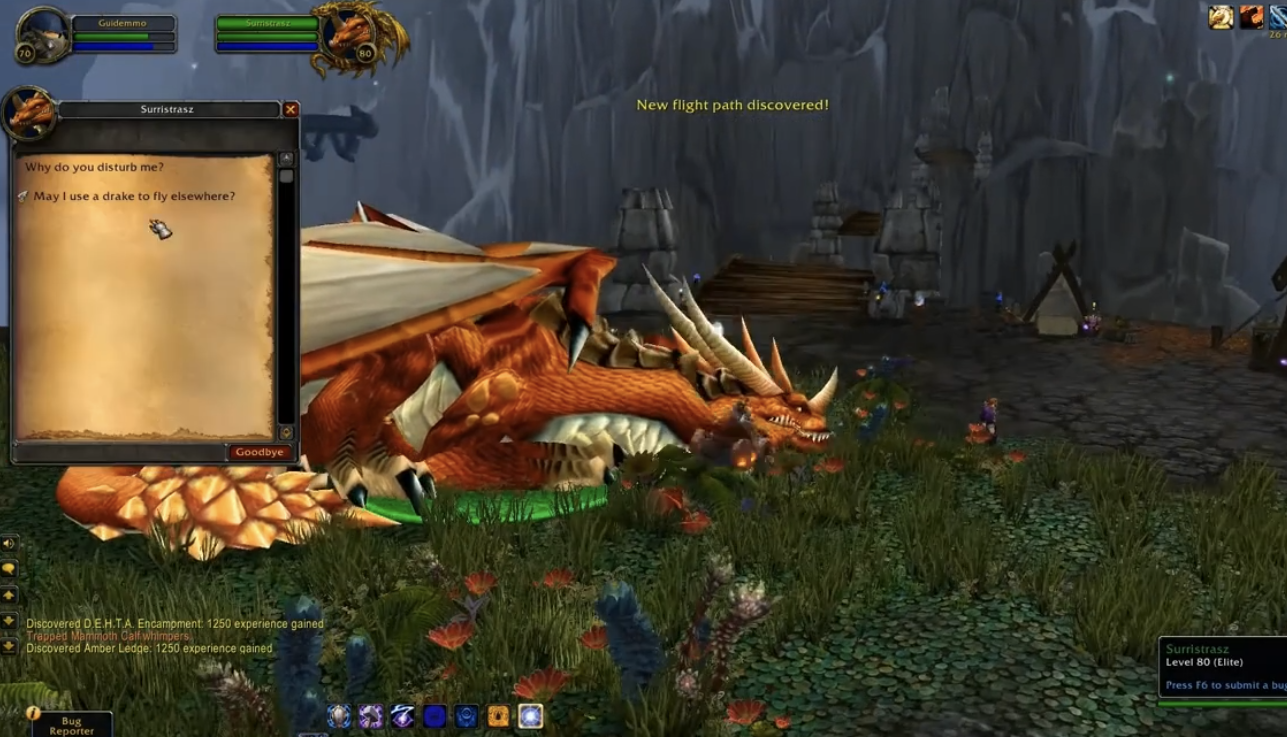 WLK怀旧服Beta测试服,玩家来到北风苔原的琥珀崖找红龙领取任务,发现红龙处并没有任务,玩家可以直接飞往考达拉。祥子哥记得在3.35版本之前,玩家都必须做完飞行任务才可以飞往考达拉,到了版本最后一次补丁,前往考达拉的前置任务取消了,而Beta测试服同样没有任务,由此可见WLK怀旧服是3.35版本无疑。