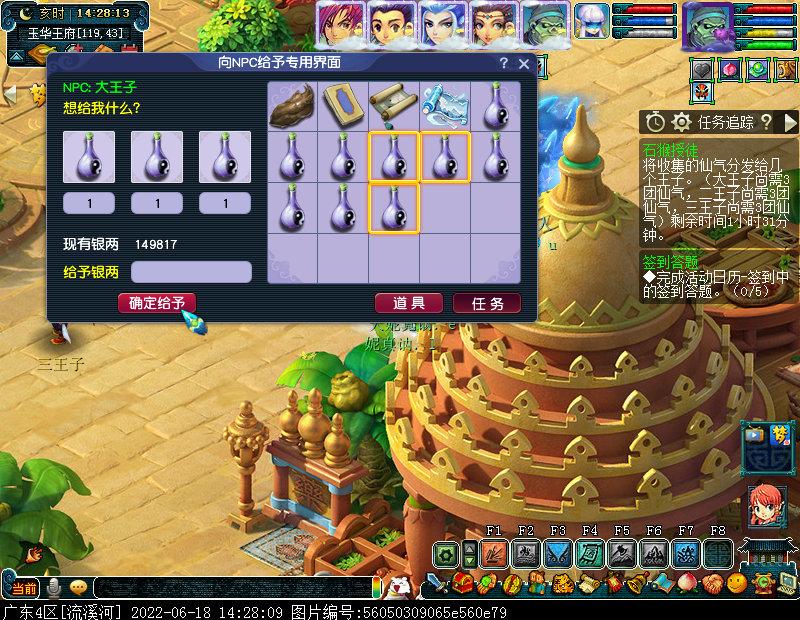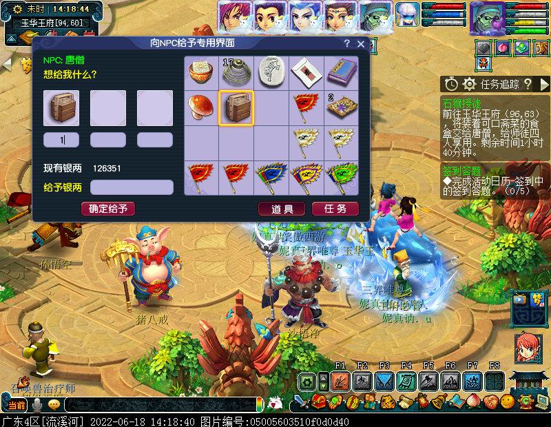 完成收集任务后,回到玉华国,点击炉子即可得到食盒,将食盒给予唐僧即可完成改任务。