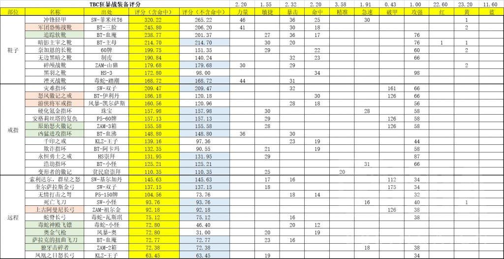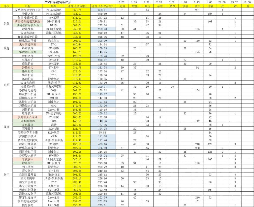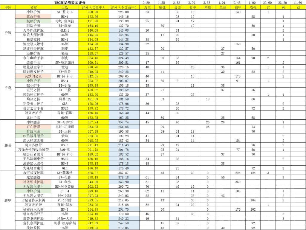 更新一下狂暴战装备评分,顺便对一些数据进行修正。