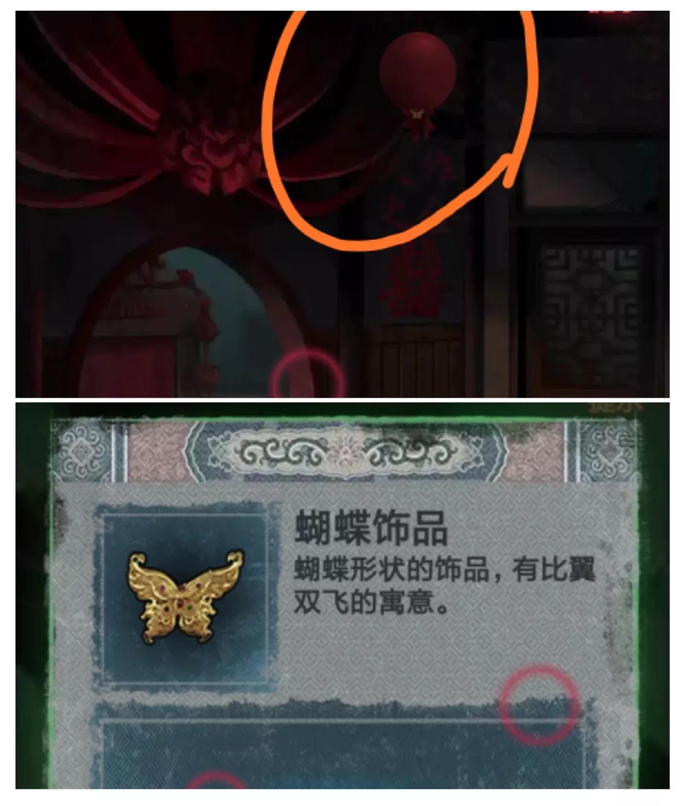 13.带着秤杆去红灯笼房间,灯笼上边的红布上放着一个蝴蝶饰品,用秤杆勾,得到一个蝴蝶饰品。