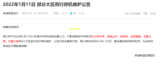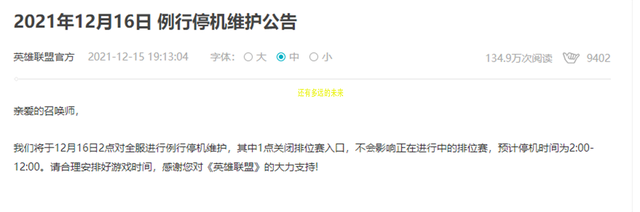 这时候我们就知道这又是在进行版本的更新了,而我们自然会查看官方维护公告看一下需要维护多长时间。