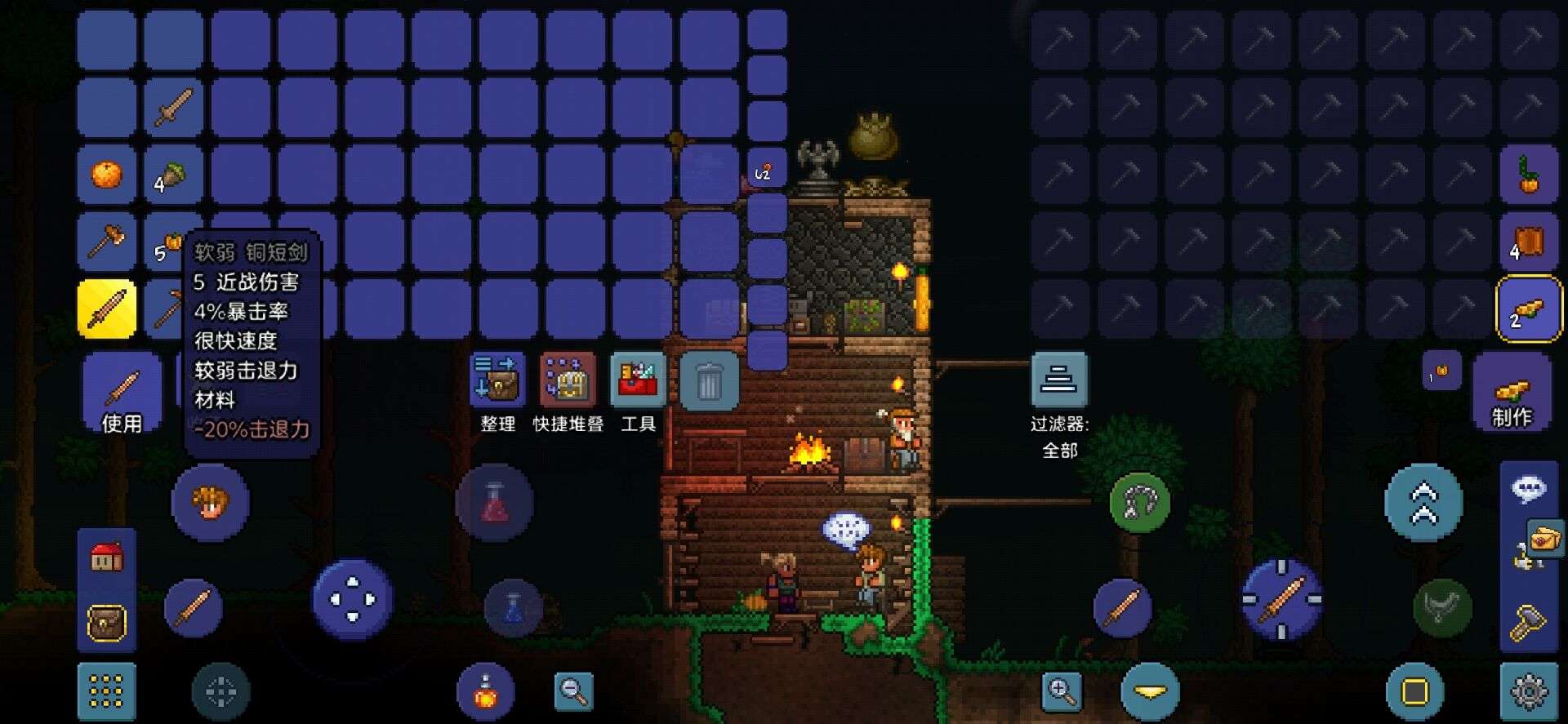 而众所周知,能够无视物块并自动索敌攻击伤害还爆表的天顶剑,是泰拉瑞亚手游中的毕业武器。