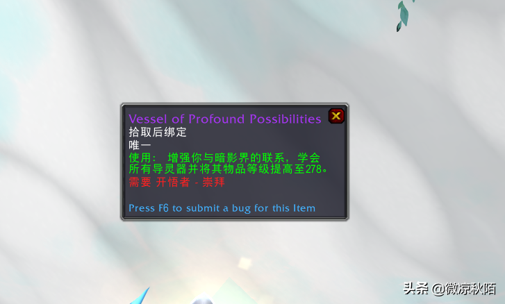 “开悟者”声望还提供两个导灵器的直升物品,当声望达到“友善”,可以用金币换到导灵器直升226级的道具。跟9.1.5版本的“无穷熏香”一样,使用道具直升后盟约羁绊所有的导灵器均直接升至226级,也会自动学习缺失的导灵器。