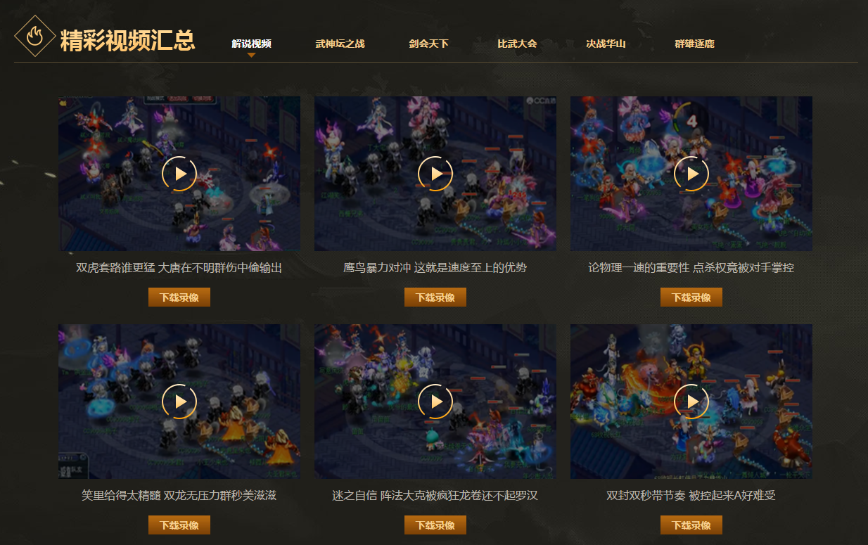 想要观看各大赛事的精彩瞬间?在赛事中心中,玩家的这个需求同样能够得到满足!玩家可以在赛事中心浏览到武神坛、剑会天下、比武大会、决战华山、群雄逐鹿等诸多赛事的录像。除此之外,还有知名主播为玩家打造的解说视频,让玩家能够轻松了解到PK大神们的PVP思路。
