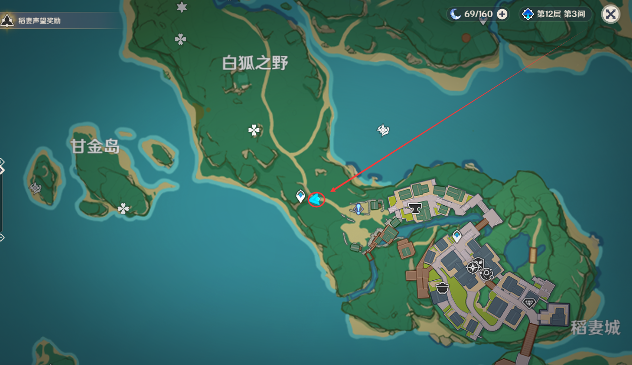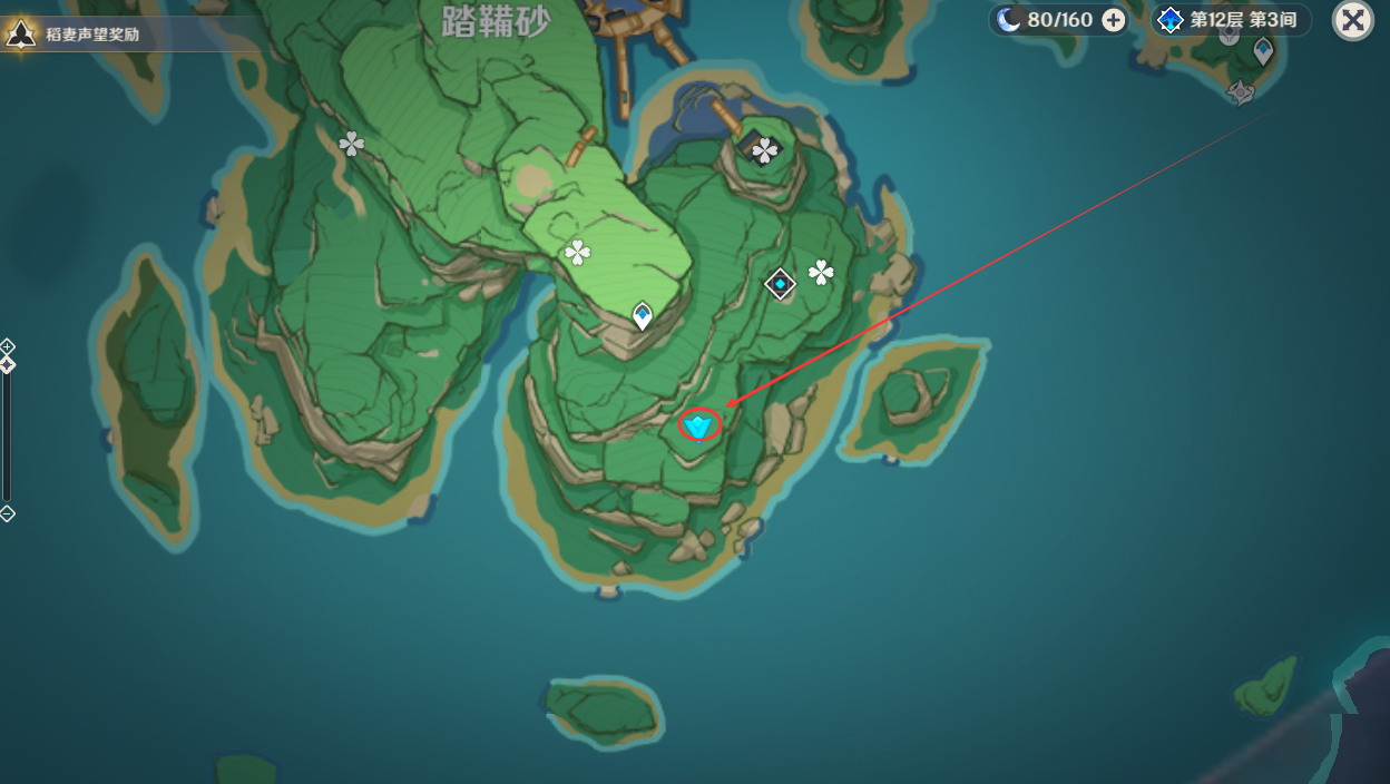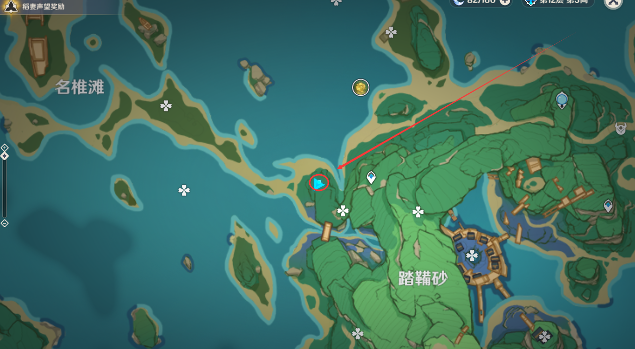 (1)在稻妻城右下侧,山顶上面位置,