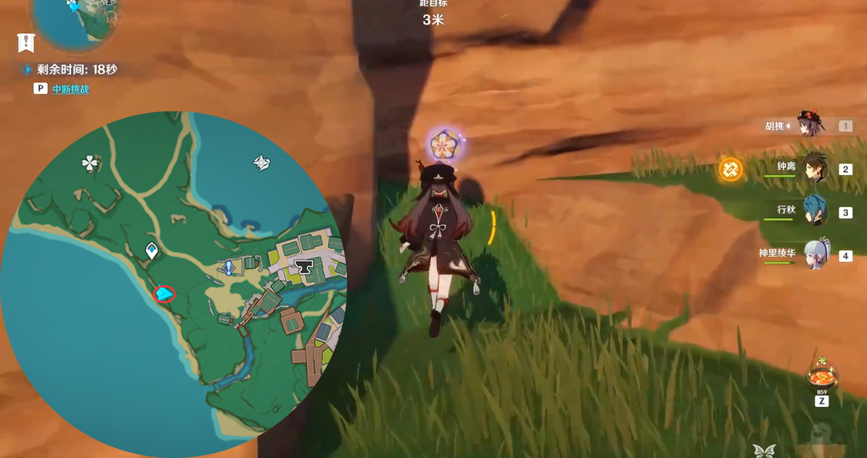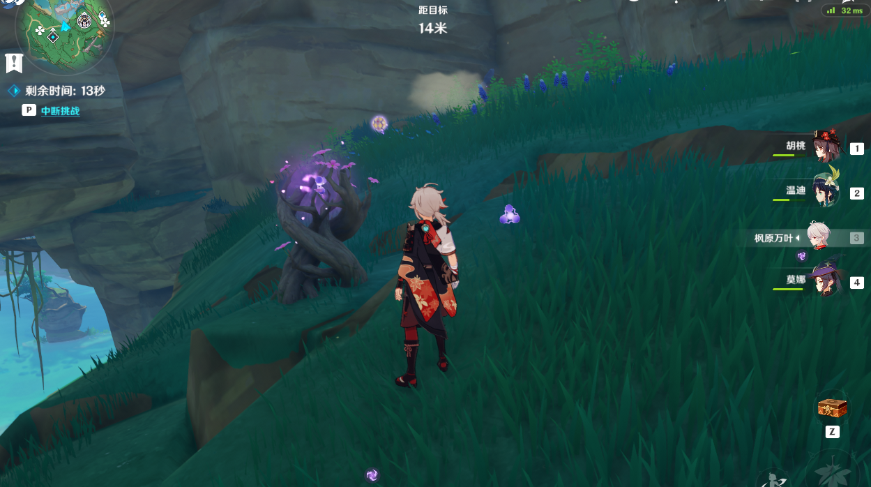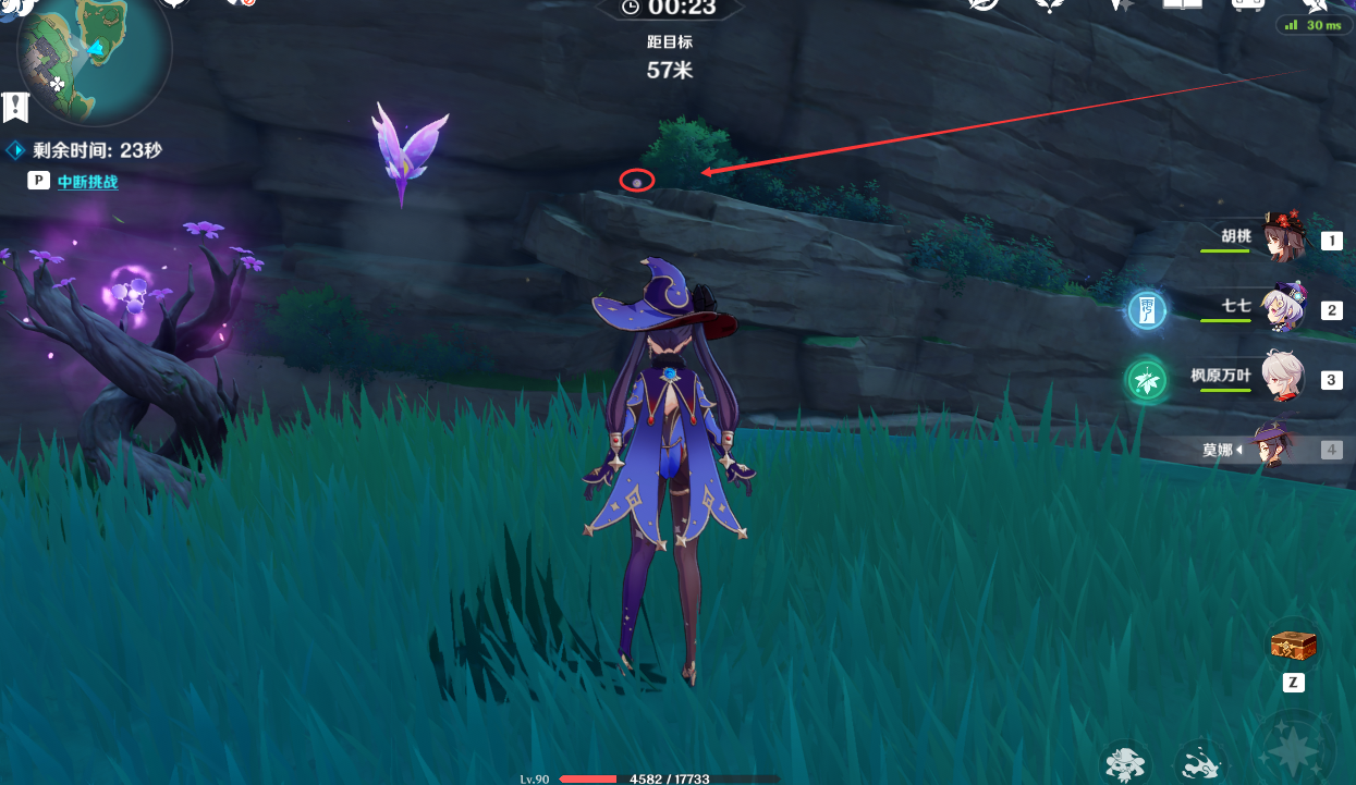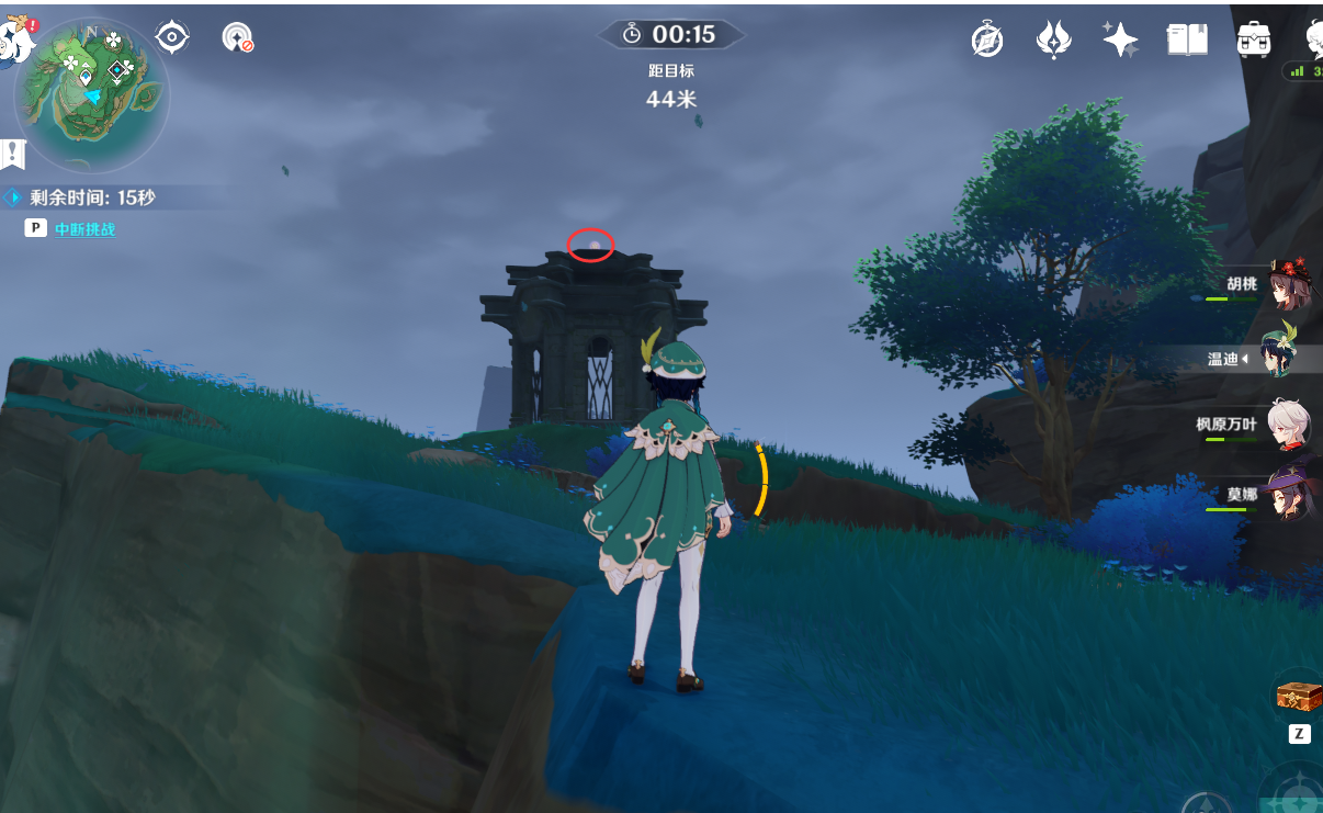(2)第1个手鞠位置在对面岩壁上,拿雷种子飞过去,